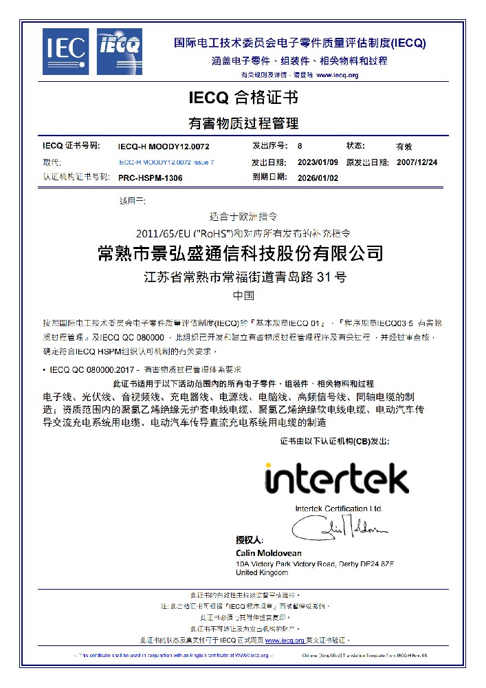 有害物質(zhì)過(guò)程管理體系證書(shū)